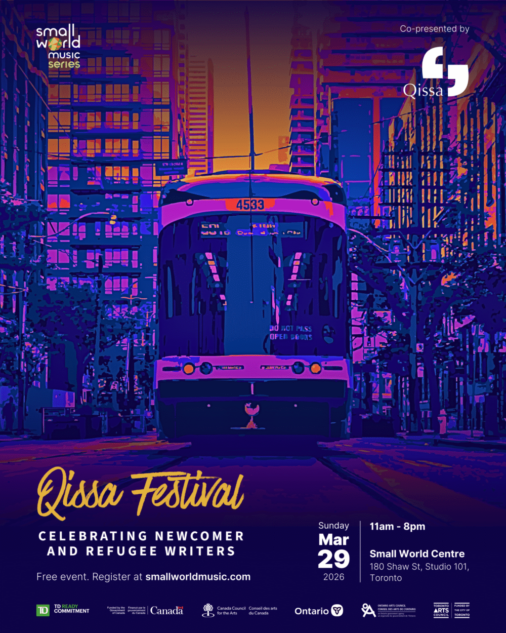 Our programming celebrates the work of underrepresented communities and engages long-standing partners and collaborators, including the Aga Khan Museum, TO Live, Drom Taberna, Batuki Music, Lula Lounge, Tempo Fest and Tawoos Initiative to bring Toronto audiences some of the most exciting sounds.