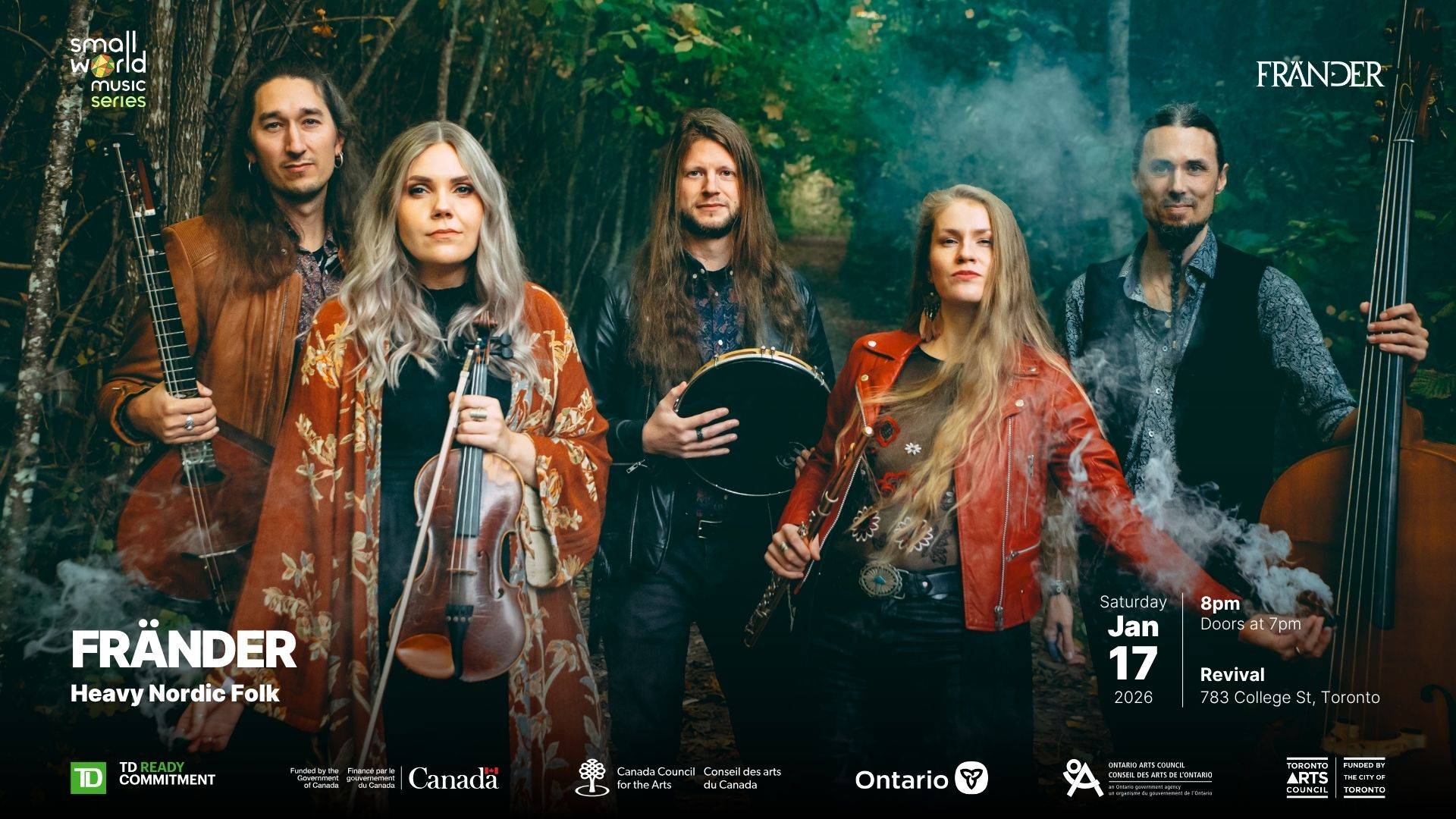 The 2026 Small World Music Series is sponsored by TD Bank Group through the TD Ready Commitment and funded by the Government of Canada, Canada Council for the Arts, Ontario Arts Council, and the City of Toronto through the Toronto Arts Council.